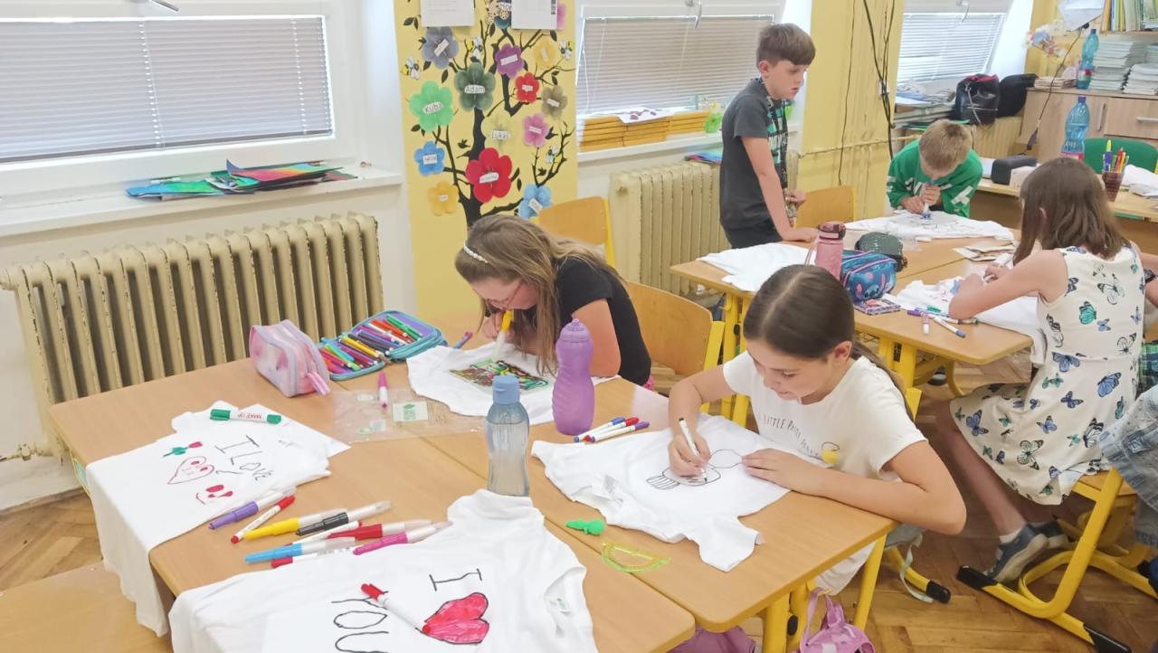 Žáci 3.B si udělali s paní učitelkou netradiční pracovní činnosti a to malování triček. Děti to moc bavilo a byly velmi kreativní v této činnosti.