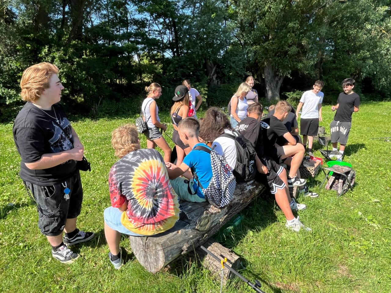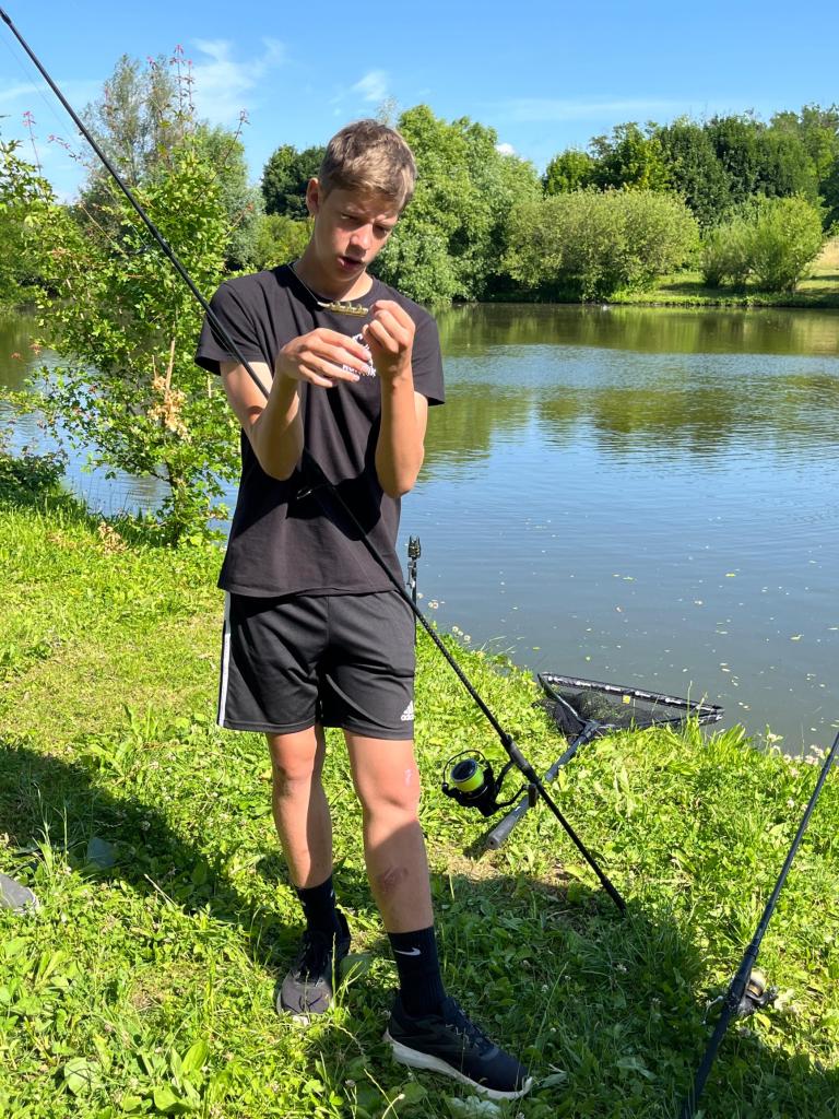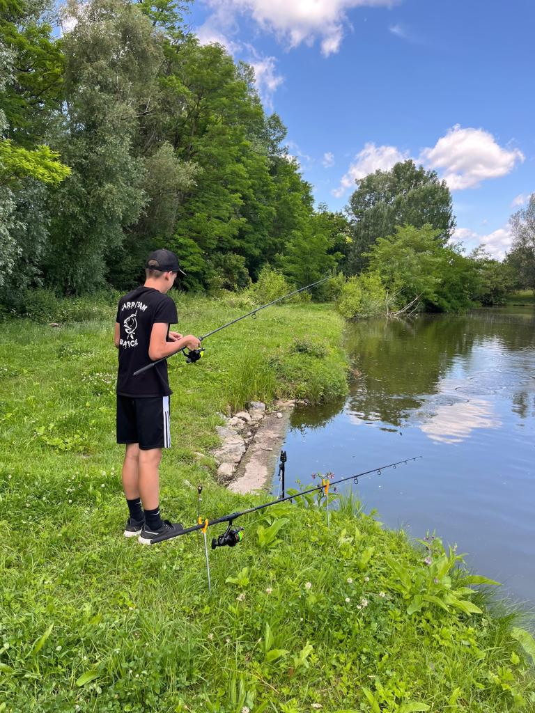 Honza Černý, žák 8.B a vášnivý rybář, uspořádal pro své spolužáky Rybářské dopoledne. Akce proběhla 24. června 2025 u rybníka v Banticích a byla plná zajímavých informací a praktických ukázek.
