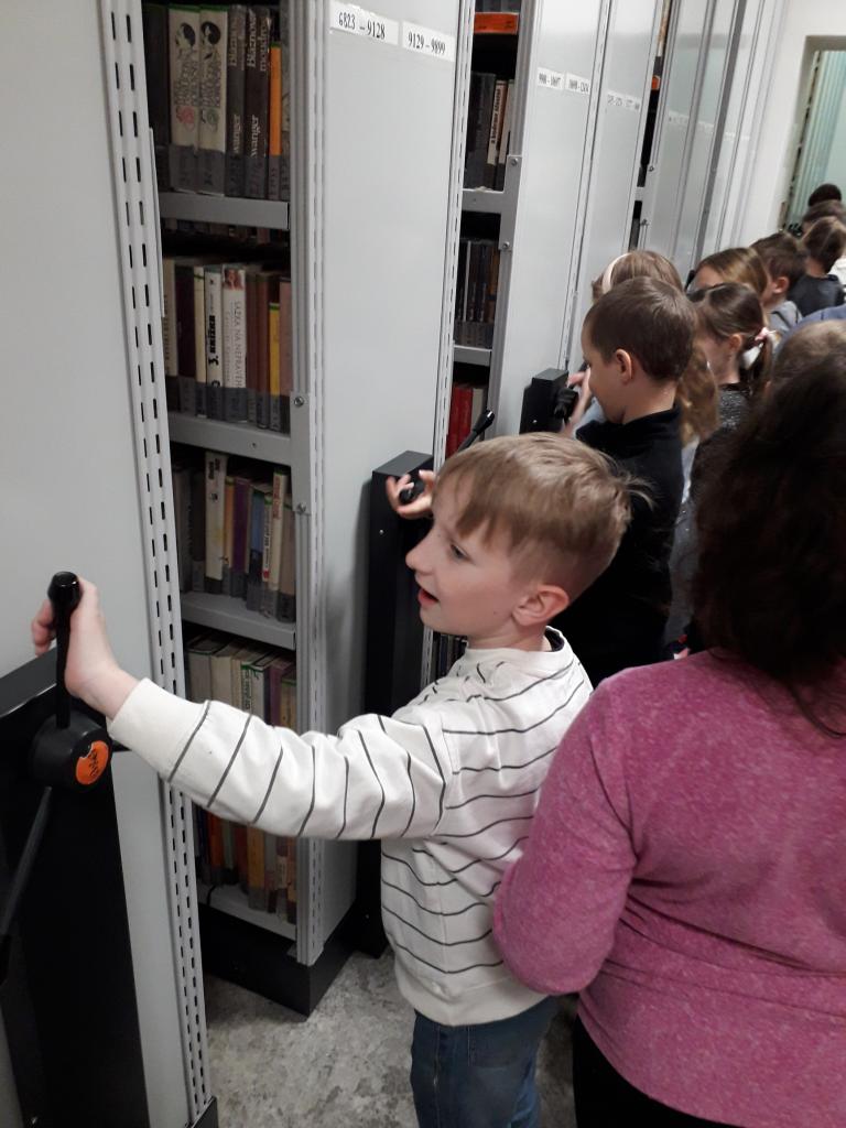 V pátek 17. dubna žáci druhých tříd navštívili po divadelním představení Městskou knihovnu ve Znojmě. Seznámili se s řádem výpůjček a odevzdávání vypůjčených knih. Prohlédli si vybavení knihovny, knihy a dokonce se mohli podívat do skladu. Tam je zaujaly důmyslné mechanické regály na kolejničkách. Mohli s nimi posunovat jak chtěli. Totéž platilo i o knížkách. Která se jim líbila, tu si mohli vzít a prohlédnout. Prostě paráda!